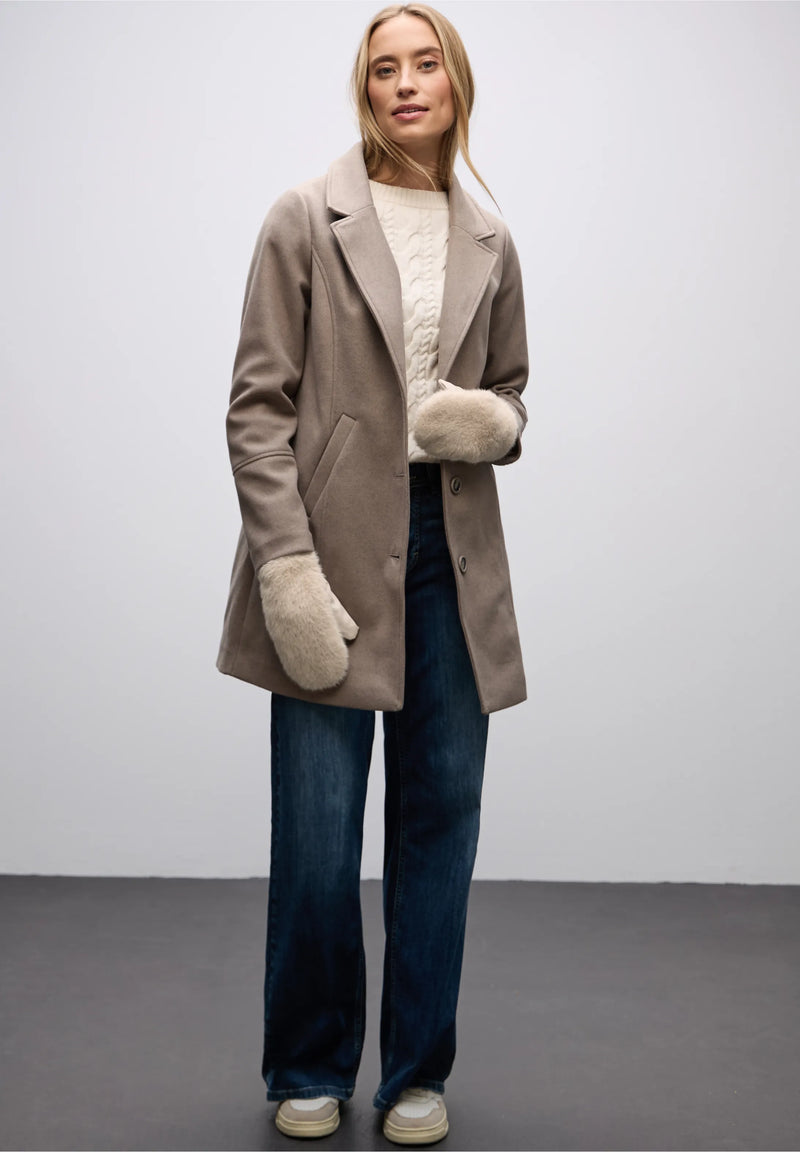 Street One lapaset yhdistävät pehmeän velourin ja tyylikkään tekoturkiksen. Resorilliset hihansuut takaavat mukavan istuvuuden.