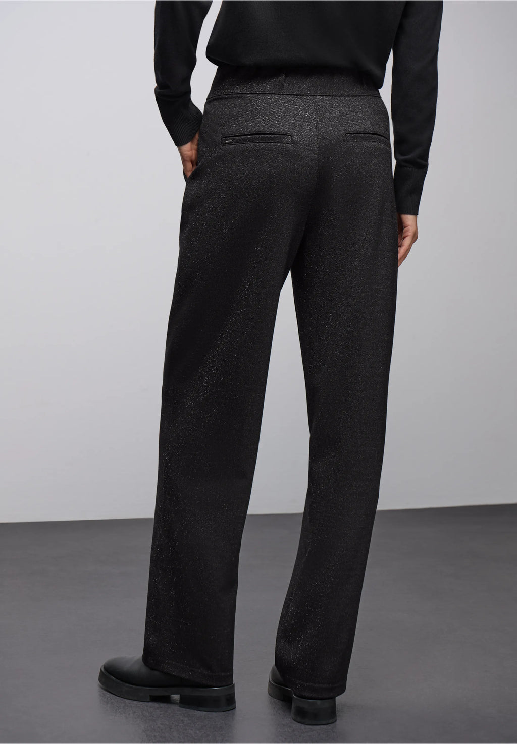 Street One suoralahkeiset housut ovat rennon tyylikkäät korkealla vyötäröllä, suorilla lahkeilla ja hillityllä glitter-viimeistelyllä. Koristeelliset napit vyötäröllä ja sivutaskuissa viimeistelevät tyylikkäästi kokonaisuuden. Joustava viskoosisekoite takaavat mukavuuden.