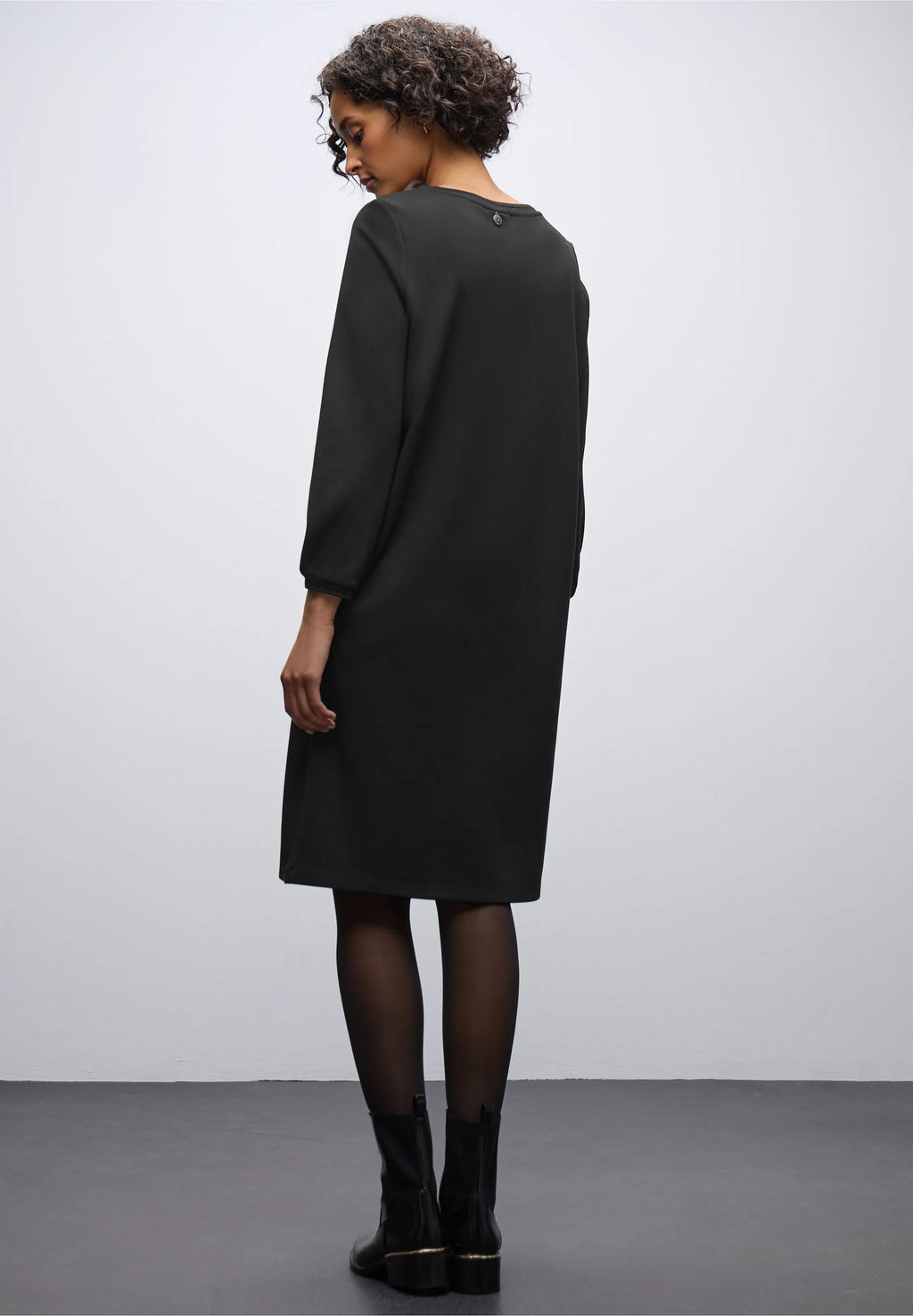 Street One polvipituinen jerseymekko tekee vaikutuksen tyylikkäällä yksinkertaisella värillä ja joustavalla viskoosisekoitteella, joka takaa maksimaalisen liikkumisvapauden. Pyöreä pääntie ja pitkät hihat joustavilla hihansuilla täydentävät ilmeen – täydellinen toimistolle, vapaa-ajalle tai illallisille. Monipuolinen mekko stailattavaksi vaatekaappiisi.